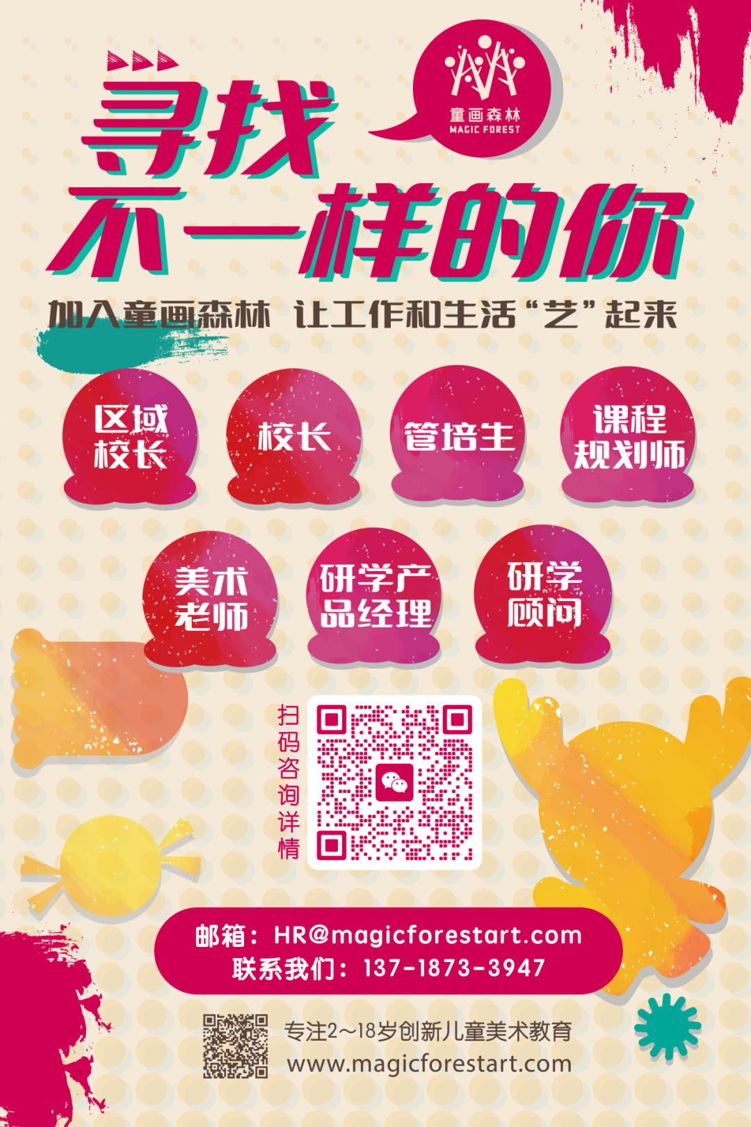 【寻找不一样的你】我最近挺招人喜欢的![]() 招人 招强人 招热情的人 招爱艺术的人 招有梦想的新人 招快乐有童心的人 招挺直腰杆挣钱的人 招立即行动说干就干的人 总之,我们招人,你来就对了 ![]() 一家专注2-18岁创新儿童美术的教育品牌 一家清华美院专家教授重点科研支持的教育项目 一家全国拥有19家直营校区的公司 一家励志成为中国第一儿童艺术教育品牌的公司 一家只愿把最好的艺术教育带给中国儿童的公司 一家经常带员工旅游、野餐、运动、吃零食的公司 一家一年为员工奖励了3台宝马的公司 咱就说 这福利 这待遇 这奖励 这公司绝对能处 是不是你们的梦中情司 ![]() 在童画森林 以下这些都是基本操作 # 舒适办公 # ![]() # 零食自由 # ![]() # 财务自由 # ![]() # 旅游自由 # ![]() ![]() ![]() ![]() ![]() # 豪车奖励 # ![]() ![]() ![]() ![]() ![]() # 陪你成长 # ![]() # 节日礼盒 # ![]() ![]() ![]() ![]() ![]() ![]() # 一群有艺术气息的小朋友 # ![]() ![]() ![]() ![]() ![]() ![]() ![]() ![]() ![]() ![]() # 堪比巴黎时装周红毯的年会 # # 动不动就天降福利 # ![]() ![]() ![]() ![]() ![]() ![]() ![]() 你来之前,这是一家公司 来了之后,这就是一个家 拒绝emo,拒绝焦虑,拒绝等待 就现在,来童画森林 成长、艺术、热爱、生活 这里不是职场 是一群追光的同伴 别犹豫,犹豫就会败北 投简历!赶紧的! 1.清晰成长阶梯及发展线路 2.员工培训提升专业能力 3.全员入职半年享受年度奖 4.季度晋升机会加速成长进程 5.超给力的团队、个人业绩奖励带薪游 6.完善的社会保险入职即上五险一金 7.合伙人孵化发展机会 8.带薪年假、婚假、法定节假日等节假日福利 9.nice的老板,年轻的伙伴 找工作就像谈恋爱, 不聊一下怎么知道合不合? 来聊聊吧! 投递邮箱:HR@magicforestart.com 联系我们: 13718733947(吉吉老师) 13520619274(王老师) 扫码添加:验证信息“招聘-XX岗位” ![]() 如果想要了解更多 点击以下链接哦 点击视频了解童画森林 ![]() 关注童画森林新媒体平台 获取更多精彩内容 Magic forest ![]() — 直营校区 — ![]() ![]() ![]() 扫码预约试听 欢迎来到童画森林 关注童画森林新媒体平台 获取更多精彩内容 Magic forest ![]() — 直营校区 — ![]()