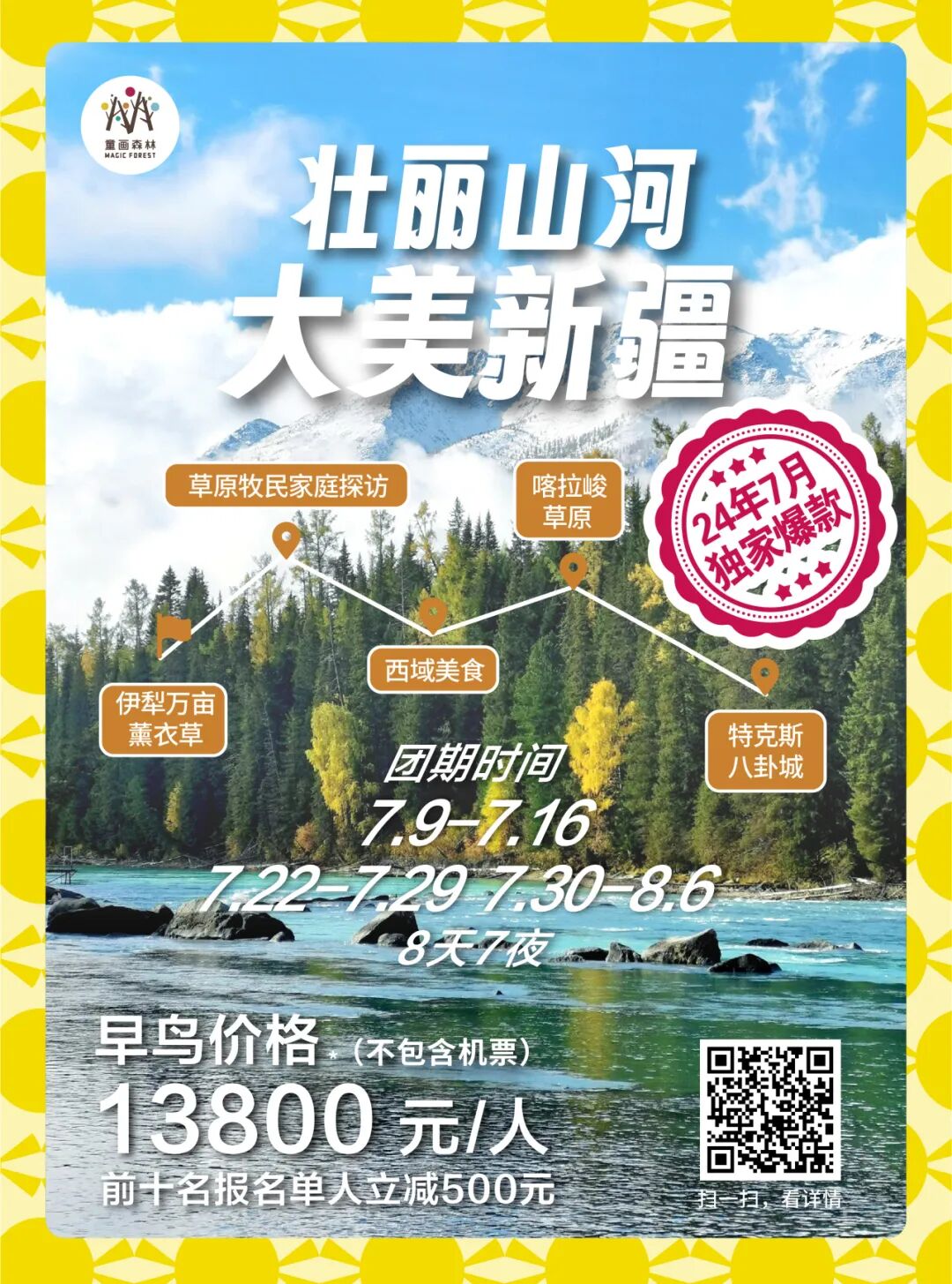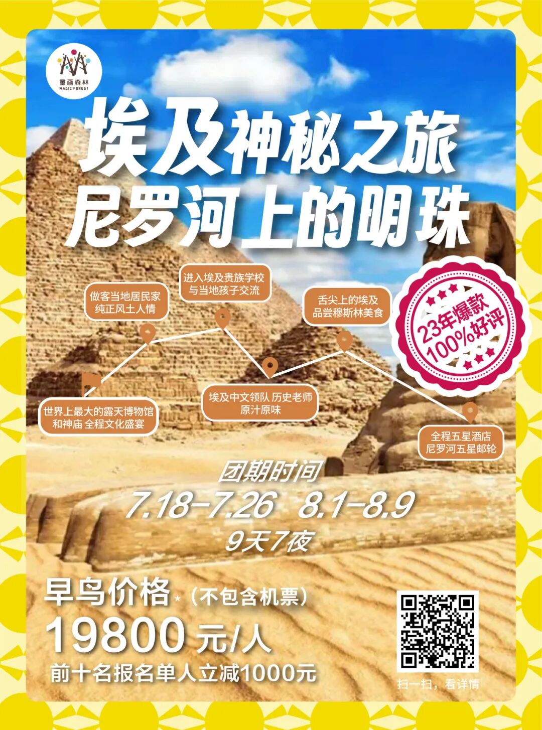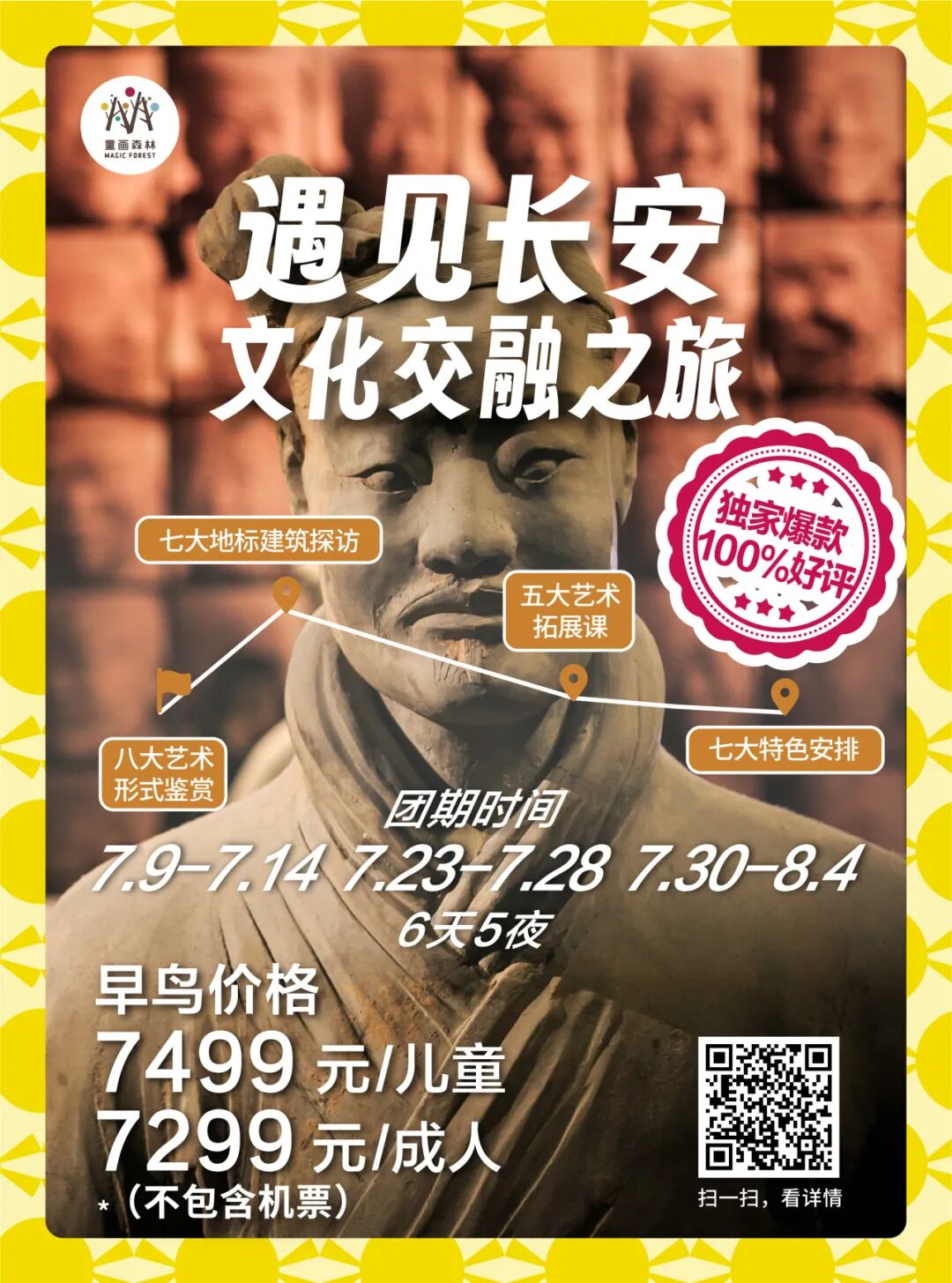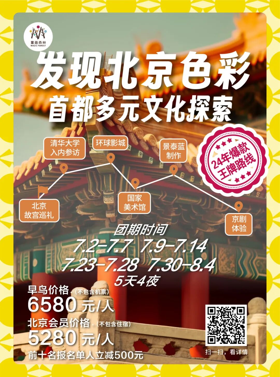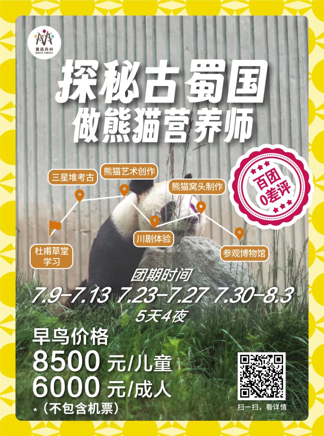 暑期研学回顾 | 桂林-镶嵌在碧水青山间的璀璨明珠漫步漓江之畔,感受“舟行碧波上,人在画中游”的诗意,学习喀斯特地貌的神奇形成,探索自然与人文的和谐共生。探访象鼻山、龙脊梯田等奇观,激发孩子们对大自然的无限好奇与敬畏之心。 ![]() ![]() ![]() ![]() ✦ + + PART-1 小画家集结日 MAGIC FOREST 桂林,作为一处集自然风光、民族文化与历史底蕴于一体的研学胜地,无疑是探索自然之美、体验农耕文化、感受民族风情的绝佳选择。 桂林龙脊梯田以其层层叠叠、规模宏大的梯田景观闻名遐迩,被誉为“大地最美指纹”。这里的梯田不仅夹在青山绿水之间,更添几分奇幻色彩。 站在梯田之巅,可以俯瞰到垂直起伏的梯田绵延数里,宛若山间巨龙的脊梁,震撼人心。 ![]() ![]() ![]() ![]() ![]() ![]() ![]() ![]() ![]() ![]() ![]() ![]() ✦ + + PART-2 赏民族风情 MAGIC FOREST 瑶寨保留了丰富的瑶族文化遗产,是了解瑶族历史、文化和民俗风情的绝佳窗口。在这里,学生们可以近距离观察瑶族的传统服饰、银饰和手工艺品,感受瑶族人民对美的追求和独特的创造力。 ![]() ![]() ![]() ![]() ![]() ![]() ✦ + + PART-3 桂北民俗体验 MAGIC FOREST 踏入芦笛岩的那一刻,仿佛穿越了时空的隧道,每一块钟乳石都在诉说着亿万年的故事。灯光下,钟乳石幻化成形态各异的景致,从“狮子回头”到“水晶宫”,每一处都让人叹为观止,感受自然与光影的完美结合。 ![]() ![]() ![]() ![]() ![]() ![]() ![]() ![]() 桂花公社不仅是一个观赏桂花的好去处,更是一个集研学、旅游、休闲购物为一体的全新文旅业态。景区内设有多个研学课程,如制作桂花糕、桂花香囊、桂花精油皂等DIY活动,以及研学课程如桂花种子培育、农田耕作体验等。这些课程不仅让学生们亲手体验传统工艺的魅力,还能在实践中培养动手能力、创新思维和团队协作能力。 ![]() ![]() ![]() ![]() ✦ + + PART-4 开启山水兴趣 MAGIC FOREST 这是一次将自然美景与知识学习完美融合的旅程 学生们可以聆听船夫讲述漓江的传说与故事,感受当地文化的深厚底蕴;还可以参与民俗活动,如观看渔民的传统捕鱼方式,亲身体验乡村生活的乐趣。 ![]() ![]() ![]() ![]() ![]() ✦ + + PART-5 沉浸山水 跃然纸上 MAGIC FOREST 在这个快节奏的世界里,我找到了一片静谧的桃花源——遇龙河竹筏游,仿佛穿越千年,邂逅了一场说走就走的古风之旅。 踏上轻盈的竹筏,随着碧波轻摇,两岸青山如黛,云雾缭绕,每一口呼吸都是自然的馈赠。山间清风徐来,水波不兴,心灵在这一刻得到了前所未有的洗涤和平静。 阳光透过树梢,洒在水面上,金光闪闪,如同无数颗星辰落入凡间,美得让人心醉。闭上眼,让这份宁静渗透每一个细胞,所有的烦恼似乎都随着流水远去。 ![]() ![]() ![]() ![]() ![]() ✦ + + PART-6 生活山水间 MAGIC FOREST 随着最后一缕夕阳温柔地洒在漓江水面,我的桂林研学之旅也缓缓落下了帷幕。这不仅仅是一段旅程的结束,更是知识与感悟的收获满满之时。 山水之间,我们收获了知识的宝藏,也留下了青春的足迹。感恩相遇,未来可期,这段旅程将成为心中最珍贵的记忆。 ![]() ![]() ![]() ✦ + + 研学亮点 吃、住、行、研 MAGIC FOREST 2024 美食体验 桂林,一个拥有丰富历史文化和自然景观的城市,其美食文化同样独具特色。 桂林米粉、阳朔啤酒鱼、荔浦芋头扣肉、阳朔竹筒饭,此外,桂林还有螺蛳粉、糍粑肉、白切鸡、扣肉糯米饭、酸辣粉、酸笋牛肉等众多美食等您来品尝。 ![]() ![]() ![]() 2024 舒适休息 童画森林秉承一贯的酒店定制标准,甄选五星标准酒店,让您和孩子在充实的旅程中,能够得到优质舒适的住宿体验。 ![]() ![]() 2024 轻松舒适 整日行程中,您将体验不同的交通方式,每一种方式都旨在增强您与这片土地的联系,使您的旅程更加生动和难忘。 ![]() 2024 艺术表达 您将在资深讲解员的带领下,深入洞窟内部,近距离观赏这些珍贵的壁画和彩塑。通过专业的讲解和生动的展示,亲手感受敦煌壁画的绘制过程,体验古代艺术家的匠心独运。 多种艺术风格,多元艺术材料,拓展孩子创造力,为孩子提供更多艺术表达方式。 ![]() 【艺术课程】《龙脊梯田写生课堂》 Art classes 课程知识点: ⭐ 世界农业文化遗产之一 ![]() 【艺术课程】《黄洛瑶寨》 Art classes 课程知识点: ⭐ 世界农业文化遗产之一 ![]() 【艺术课程】《艺术扎染》 Art classes 课程知识点: ⭐ 亲手体验传统非遗技艺 ![]() 【艺术课程】《遇龙河写生课堂》 Art classes 课程知识点: ⭐ 阳光下的色彩感受与表达 ✦ + + 往期桂林研学回顾 MAGIC FOREST ![]() 虽然研学之旅已经结束,但学习的脚步永不停歇。让我们带着在桂林收获的宝贵财富,继续前行,在未来的道路上绽放光彩 暑假团期 (7.23-7.28 7.30-8.4) ![]() 还有少量名额 赶快行动 联系老师报名吧 !!! 暑期更多精彩研学活动 等你来参加 ![]() ![]() ![]() ![]() ![]() ![]() ![]() ![]() ![]() ![]() ![]() ![]() 咨询答疑建议添加以下老师微信 ![]() 长按二维码 添加童画森林张老师 ![]() 长按二维码 童画森林马老师 ![]() 长按二维码 童画森林沈老师 电话联系 马老师:13611009680 沈老师:18618363312 张老师:15081685615 童画森林往期研学 MAGIC FOREST 童画森林,十九家直营校 11年品牌历史 400+营地导师 保证专业知识输出 60+优质主题研学线 丰富孩子人生体验 10+知识涉猎领域 保证多元视野 专注亲子研学、摩登父母游 ![]() ![]() ![]() ![]() ![]() ![]() ![]() ![](