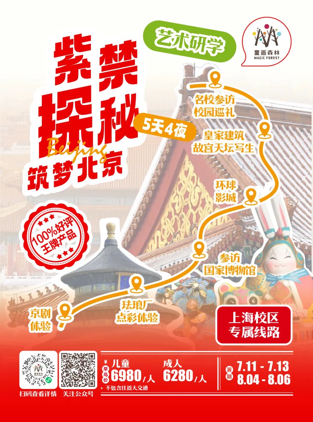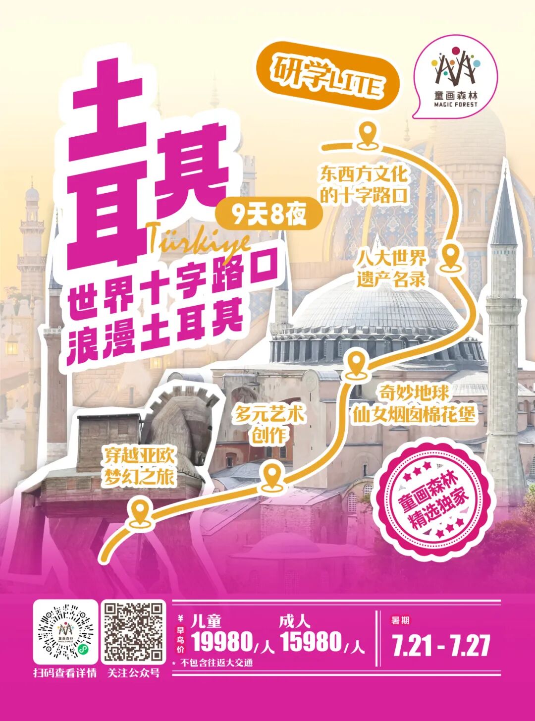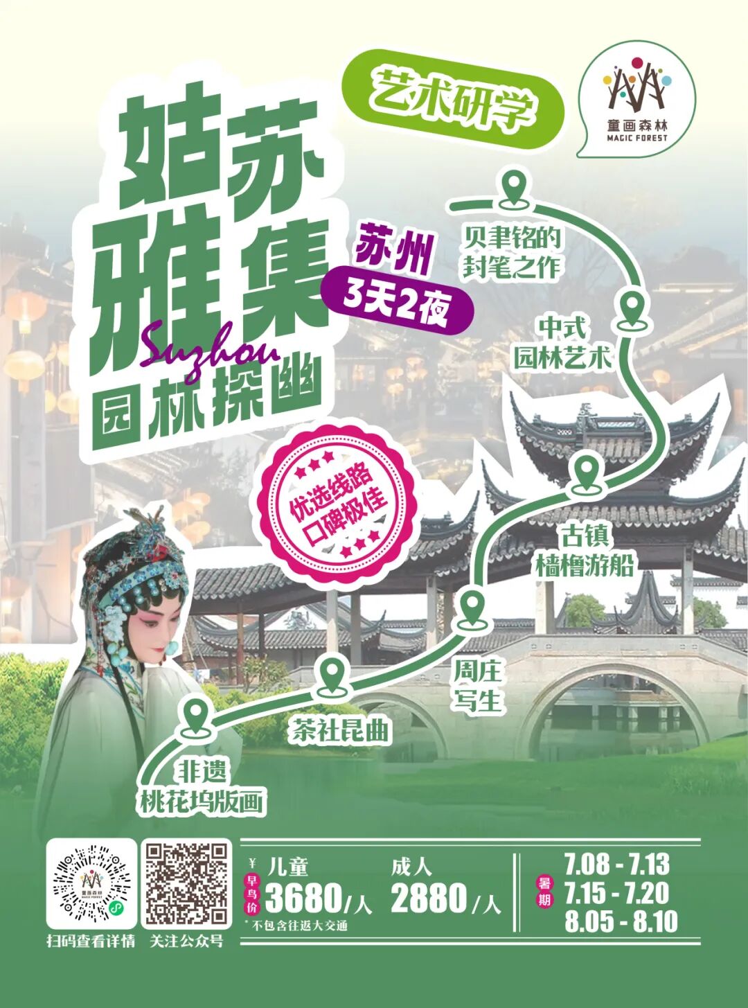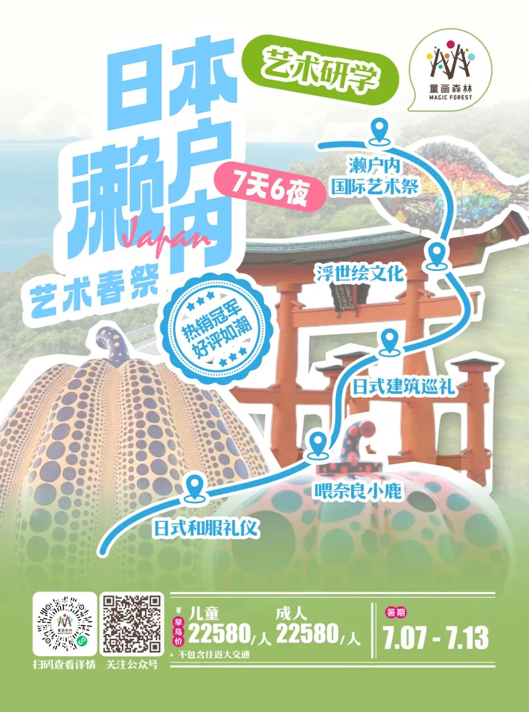 2025童画森林陪你在全世界长大——暑期研学产品发布![]() “教育的本质意味着, 一棵树摇动另一棵树, 一朵云推动另一朵云, 一个灵魂唤醒另一个灵魂。” 在这个炽热的暑期 一场汇聚艺术与亲情的 非凡旅程即将启航 童画森林艺术研学暑期线路重磅发布 它不只是一次出行 更是为孩子与家长搭建的成长桥梁 在艺术的沃土里,以爱为养分 让亲情与才华共同绽放 在这里,每一步探索 都是对世界全新的认知 每一次创作都是心灵的深度对话 ![]() ![]() ![]() ![]() 把时间的钟倒转回宋元时期,千年古镇泉州的独特地理,成为海上丝绸之路的起点,是马可波罗眼中的“世界第一大港”。如今我们再一次踏上曾经代表着繁荣的海丝之旅,又将给孩子们带来什么样的多维视野和无限想象呢?当整座城市都是世界文化遗产,在“世遗”的价值挖掘中,在红砖古厝的活太传承中,和孩子们一起近距离体验古城的魅力,与非遗传承人面对面交流学习,我们都是非遗文化的传承者。 ![]() ![]() ![]() ![]() ![]() ![]() ![]() ![]() ![]() ![]() 景德镇,千年瓷都,陶瓷文化源远流长。走进景德镇的陶瓷博物馆,琳琅满目的瓷器让人目不暇接,从古代的精美瓷器到现代的创新作品,每一件都凝聚着工匠们的心血。孩子们可以在陶瓷作坊里,亲手制作一件属于自己的瓷器,体验陶瓷制作的乐趣。景德镇周边的自然风光也十分迷人,青山绿水,为艺术创作提供了丰富的灵感源泉。 ![]() ![]() ![]() ![]() ![]() ![]() ![]() ![]() 苏州,有着“人间天堂”的美誉,从上海出发,周末就能开启这场美妙的生活艺术之旅。漫步在苏州的园林,亭台楼阁、假山池沼,一步一景,尽显江南生活的精致与优雅。苏绣、评弹等传统艺术,更是苏州的文化名片。孩子们可以跟着苏绣大师学习刺绣技巧,聆听婉转的评弹,体验苏州的慢生活,感受艺术融入生活的美好。 ![]() ![]() ![]() ![]() ![]() ![]() ![]() ![]() 北京,作为中国的首都,拥有丰富的文博艺术资源。探访顶级梦校,感受浓厚学术氛围,树立远大志向。在皇家琉璃艺术馆,欣赏精美琉璃制品,了解传统工艺的独特魅力。跟着课本游览故宫、颐和园等名胜,让知识鲜活起来。参与模拟外交活动,锻炼表达,开拓国际视野。漫步老北京胡同,体验地道京味生活,深入感受这座城市的文化底蕴。 ![]() ![]() ![]() ![]() ![]() ![]() ![]() ![]() 黔东南,少数民族聚居地,拥有丰富多彩的民族文化。苗族、侗族等民族的传统建筑、服饰、歌舞,展现了独特的民族风情。孩子们可以参观民族博物馆,了解少数民族的历史与文化。黔东南的自然风光也令人陶醉,青山绿水、梯田云海,宛如人间仙境。在这里,孩子们可以参与民族艺术活动,如蜡染、刺绣等,感受自然与民族艺术的独特魅力。 ![]() ![]() ![]() ![]() ![]() ![]() ![]() ![]() 大同,这座历史文化名城,承载着千年的厚重底蕴。古老的云冈石窟,那精美的佛像雕刻,每一处线条都诉说着历史的沧桑与艺术的辉煌。走进大同博物馆,仿佛穿越时空,能触摸到古代文明的脉络。在这里,孩子们可以感受传统艺术的魅力,让历史与艺术在心中留下深刻的印记,开启一场震撼心灵的文博艺术之旅。 ![]() ![]() ![]() ![]() ![]() ![]() ![]() ![]() ![]() ![]() 西溪南,宛如一幅水墨画卷,宁静而美丽。端午时节,走进西溪南,古树林立,溪水潺潺,白墙黑瓦的徽派建筑倒映在水中,如诗如画。这里的自然环境清幽,是写生创作的绝佳之地。孩子们可以参与端午传统活动,如包粽子、做香囊等,感受传统文化的魅力。在西溪南,孩子们可以远离城市的喧嚣,在自然与传统文化中,度过一个诗意的端午假期。 ![]() ![]() ![]() ![]() ![]() ![]() ![]() ![]() 踏入敦煌,仿佛穿越了时空隧道,回到了那个辉煌灿烂的古代文明。这里是丝绸之路的璀璨明珠,是东西方文化交汇的圣地。 进莫高窟,每一幅壁画、每一尊雕塑都是历史的见证,艺术的瑰宝。它们静静地诉说着千年的故事,让人不由自主地沉醉在那斑斓的色彩与深邃的意境之中。 在敦煌研究院的课堂上,我们深入学习敦煌学的奥秘,从佛教艺术到历史文化,从壁画解读到文物保护,每一次探讨都让我们对这片土地有了更深的理解和敬畏。 登上鸣沙山,俯瞰月牙泉的静谧与美丽。夕阳下,金色的沙丘与碧绿的泉水交相辉映,构成了一幅绝美的画卷。在这里,我们感受到了大自然的鬼斧神工,也体验到了“大漠孤烟直,长河落日圆”的壮丽景象。 ![]() ![]() ![]() ![]() ![]() ![]() ![]() ![]() ![]() 踏入西双版纳,仿佛走进了一个绿色的梦幻世界。这里是热带雨林的王国,是生物多样性的宝库,更是我们研学探索的秘境之地。 漫步在茂密的丛林中,高大的望天树直插云霄,各种奇花异草争奇斗艳。我们仿佛置身于一个巨大的生态博物馆,每一处都充满了惊奇与发现。在这里,我们学习了热带雨林的生态系统,见证了自然界的鬼斧神工。 ![]() ![]() ![]() ![]() ![]() ![]() ![]() ![]() ![]() ![]() ![]() 濑户内海地区,充满了浓郁的日本生活艺术氛围。这里有美丽的海岛风光,湛蓝的海水、洁白的沙滩,让人仿佛置身于梦幻世界。岛上的艺术场馆,如直岛的地中美术馆,独特的建筑设计与艺术作品完美融合。孩子们可以参观这些艺术场馆,与当地艺术家交流,感受日本的生活美学。还能体验日本的传统文化,如茶道、陶艺等,开阔国际视野。 ![]() ![]() ![]() ![]() ![]() ![]() ![]() ![]() 踏上坦桑尼亚的广袤大地,穿越塞伦盖蒂的无垠草原,与万兽之
